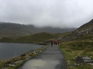 With those words in mind off we set for another attempt at climbing Snowden. Last year’s attempt to get to the summit in memory of our mutual friend, Carol Massey, having been cancelled as the weather was so awful – heavy rain and 70 mph winds! As you can tell from the pictures taken at the time.